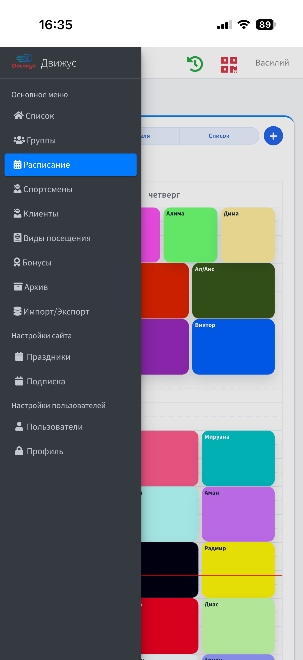 Приложение Движус предназначен для помощи руководителям, администраторам и специалистам в работе по учету посещений занятий, пропусков и своевременной оплаты.