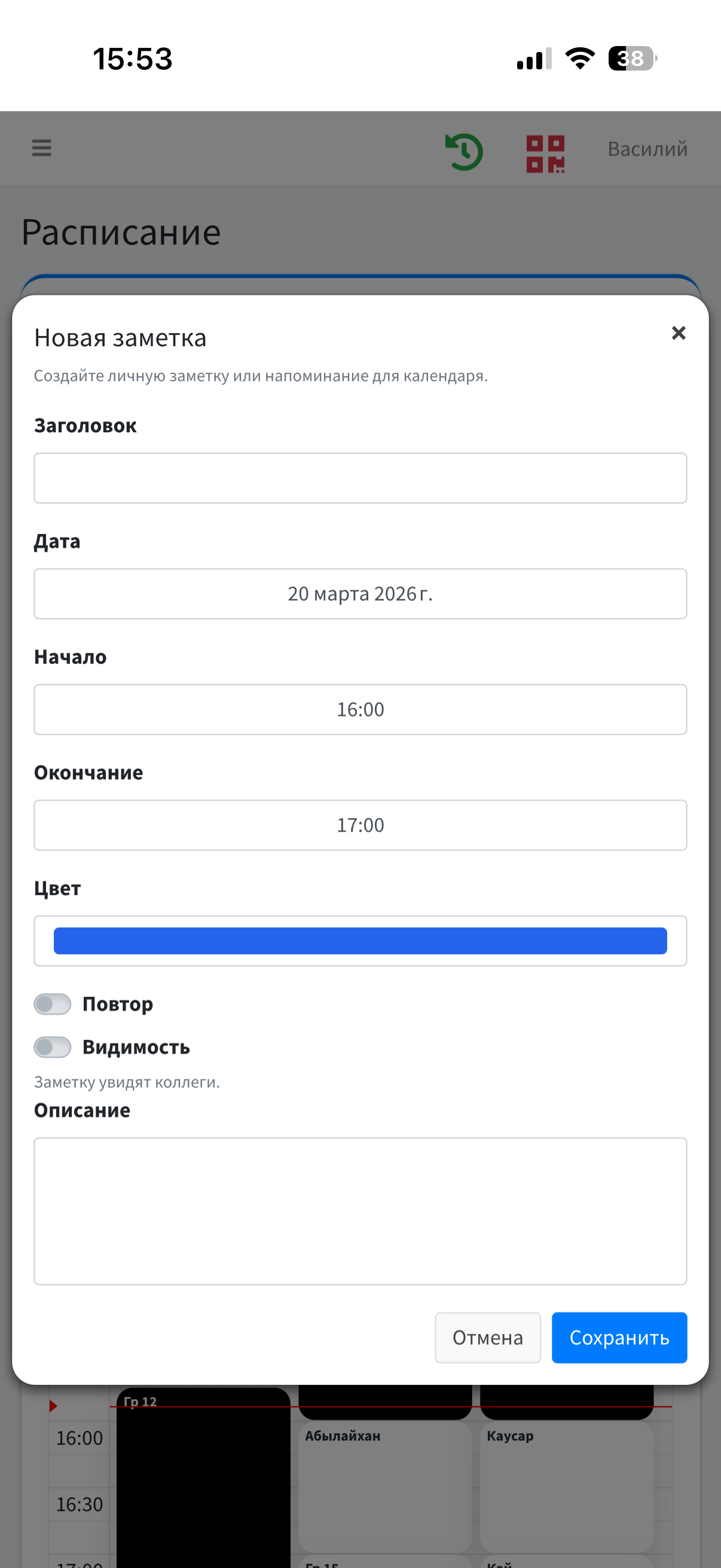 - Расписание;